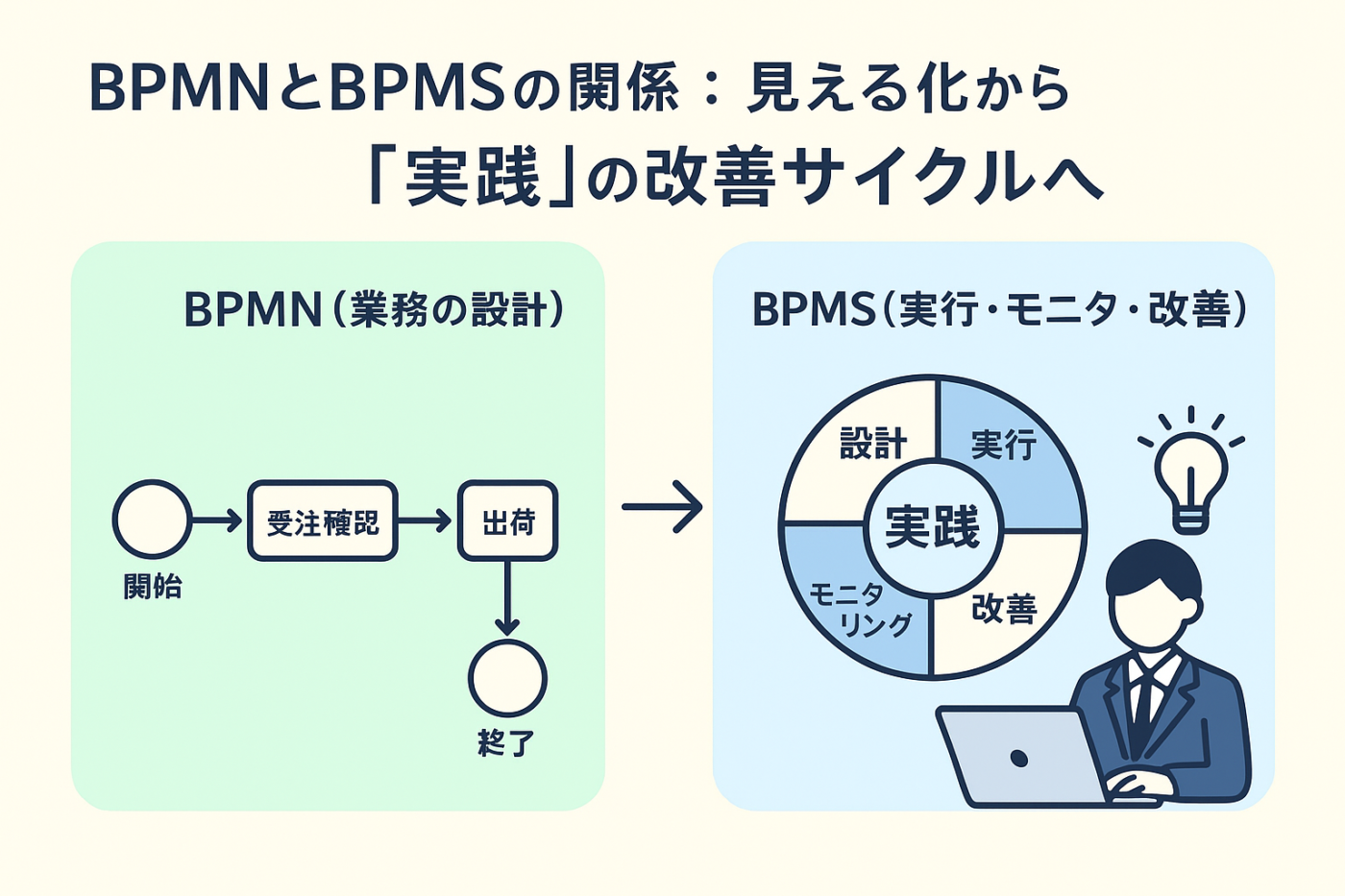 業務フローを描くと改善できた気分になりますが改善は実現できないです。すなわちPDCAが回る改善のインフラとしてBPMSが必要になります。